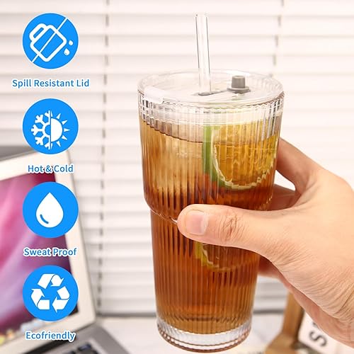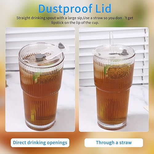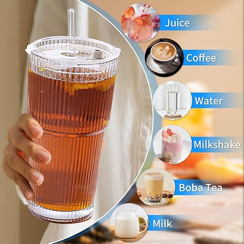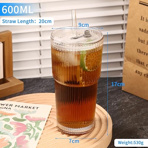 Yoxovo Lot de 2 Verre avec Paille, 600ml Verre Matcha,Verre avec Couvercle et Paille,Tasse à Jus, Verre Smoothie, Tasses en Verre à Café Glacé, Verre à Bière Qualité Supérieure,pour Famille,Fête