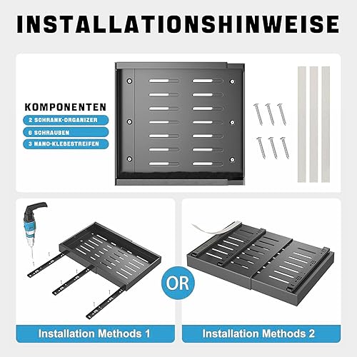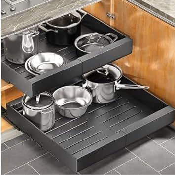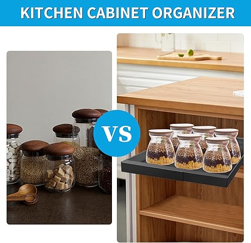 Dechoga Tiroir Coulissant Cuisine, Largeur Réglable et Extensible, Plateau Coulissant Placard Cuisine, en Acier au Carbone, étagères de Rangement, pas de Perçage ni de Clouage Nécessaires(Noir)