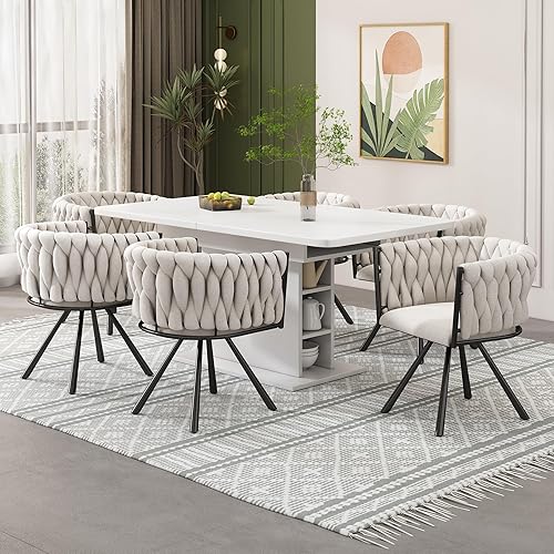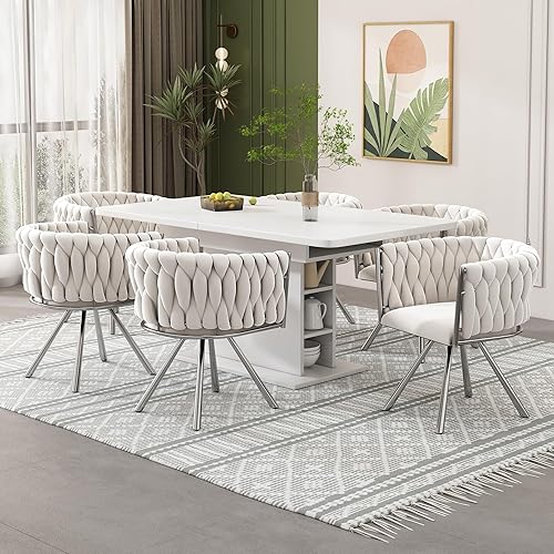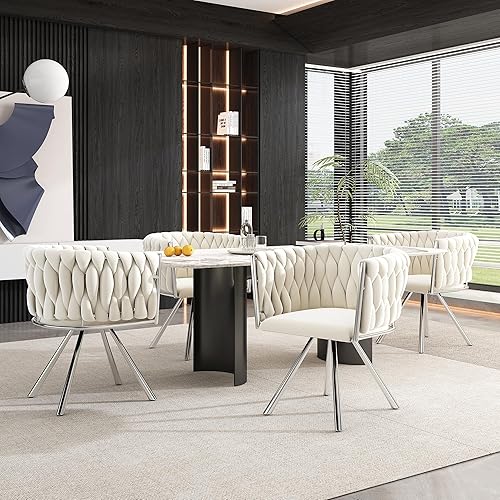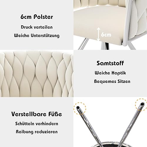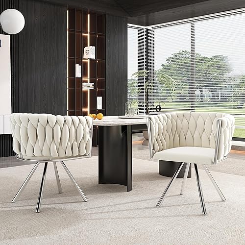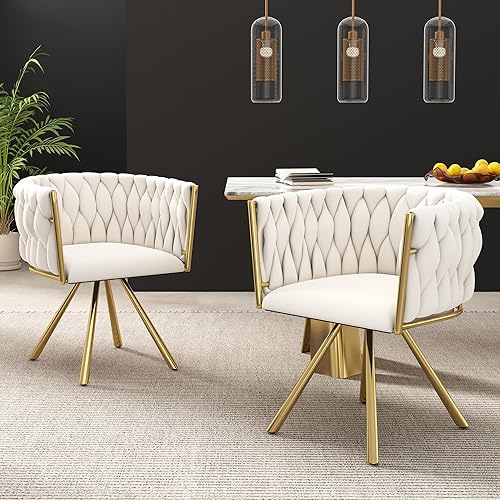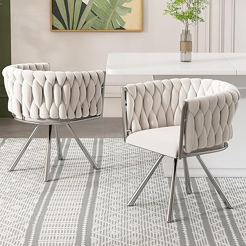 Zepneiy Chaises Salle Manger, Lot de 2 chaises de Salle à Manger Pivotantes avec Pieds en métal, Chaise Beige Argenté en Velours pour Salle à Manger Cuisine