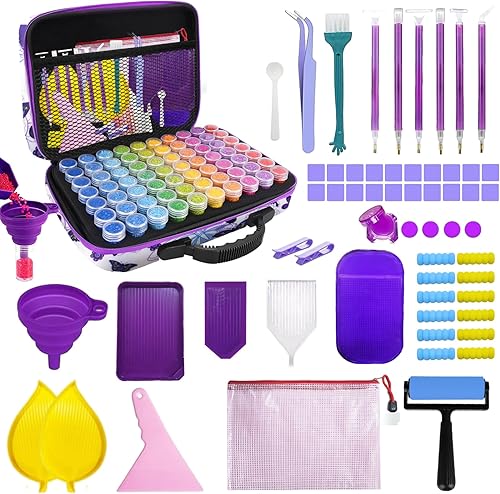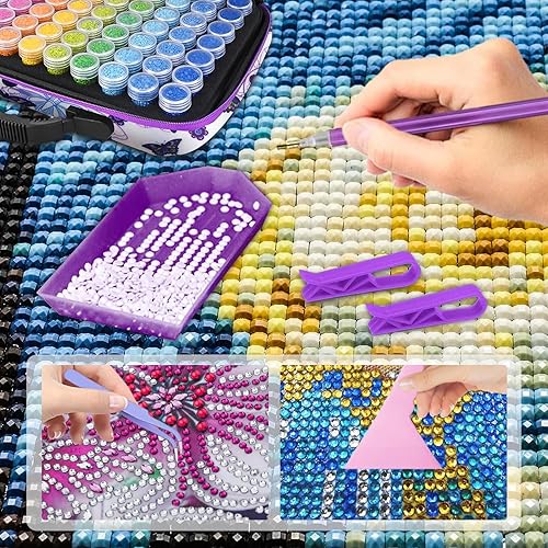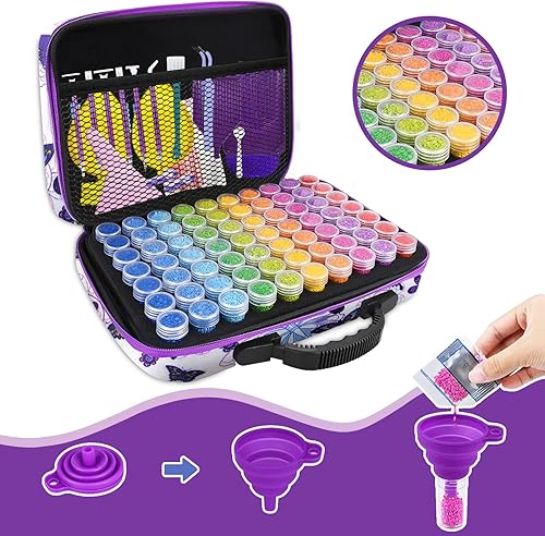 LOVICVKEM Diamond Painting Boite, 70 Emplacements Malette de Rangement Peinture Diamants avec Entonnoir, Broderie Diamant Accessoires (B)