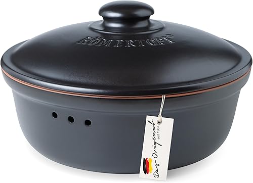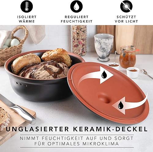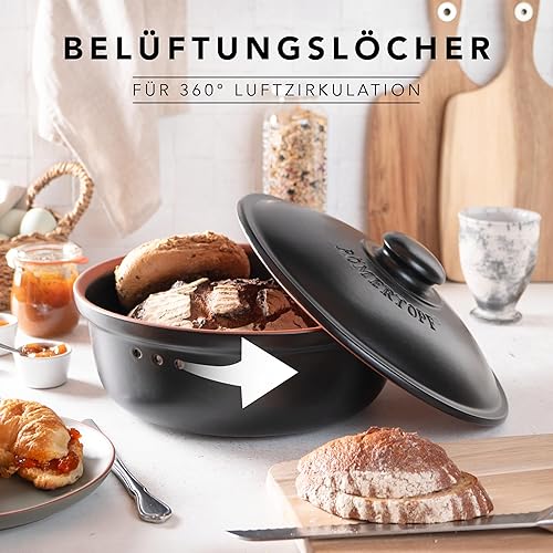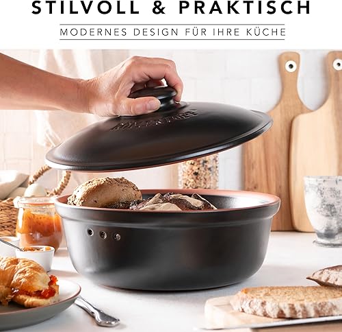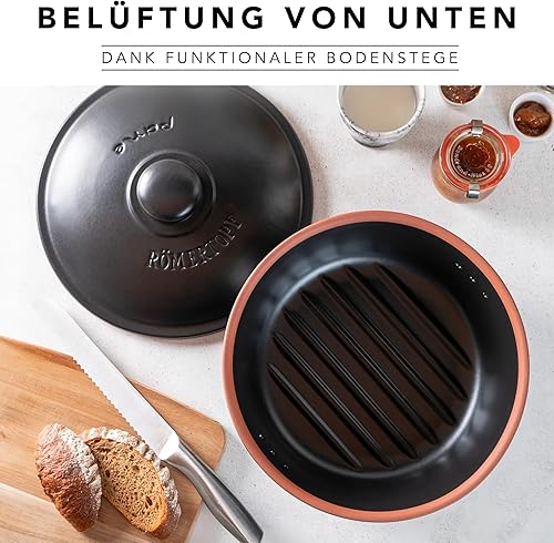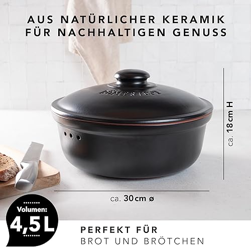 Romertopf Pot à pain rond Ø 30 cm – Boîte à pain noire en céramique – Pot en argile respirant pour une fraîcheur durable du pain et des petits pains