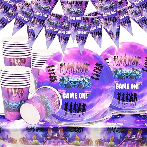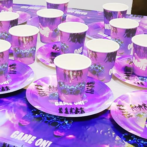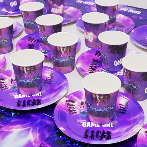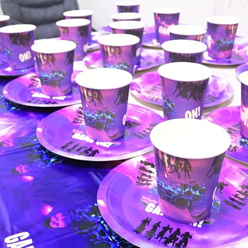 Huaxintoys Set de Vaisselle Thème de Jeu Anniversaire Fête, Comprendre 20 Papier Assiettes, 20 Tasses,10 Fanion et Nappes, pour Anniversaires d'enfants Thème de Jeu Decoration Accessoires de Fêtes