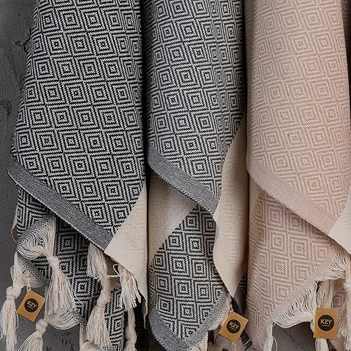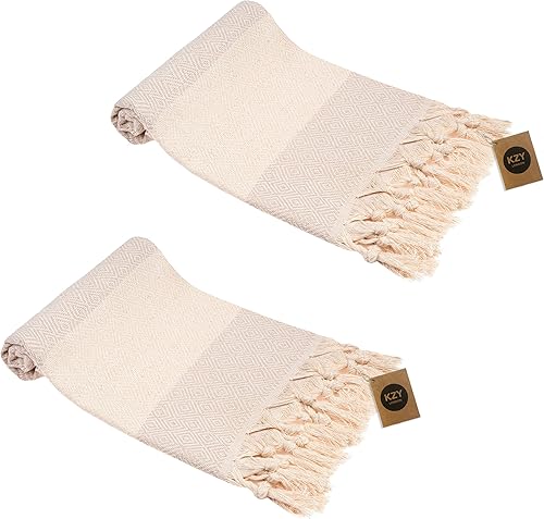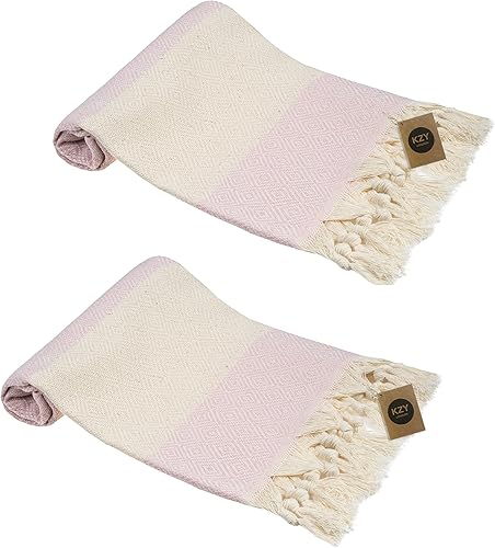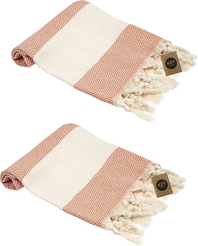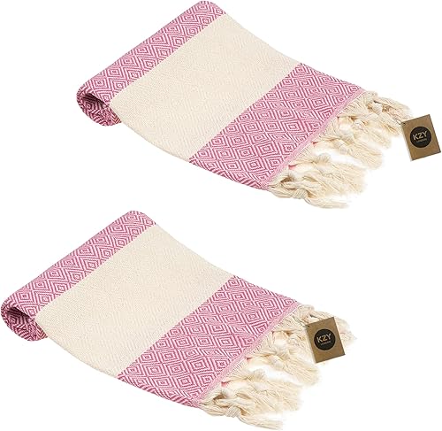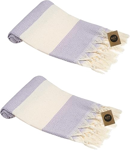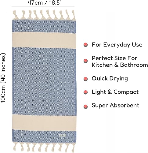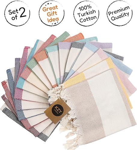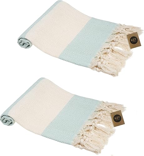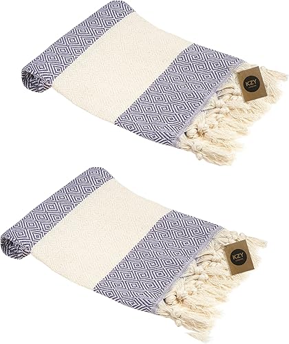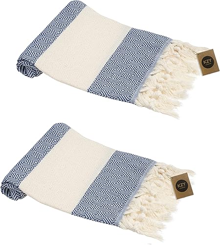 Lot de 2 essuie-mains turcs Peshtemal - Serviette décorative absorbante prélavée pour le visage, les mains, les cheveux, la salle de sport, la salle de bain - Bleu - 50 x 100 cm