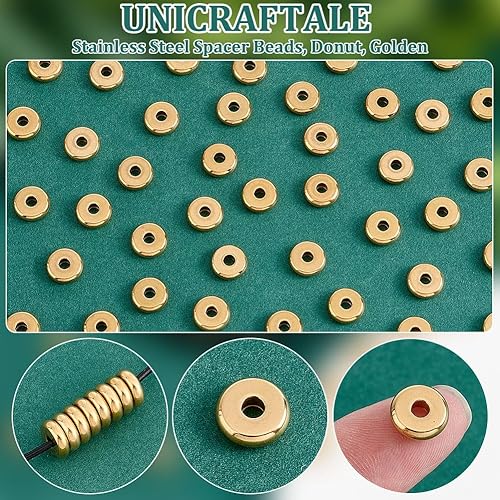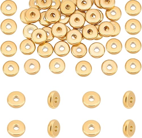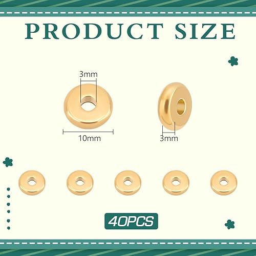 UNICRAFTALE 40 pièce Perles D'Espacement Acier Inoxydable Perles Entretoises 10mm Perles Rondes Plates Dorées Perles en Vrac Perles de Bracelet Perles Lisses pour la Fabrication de Bijoux de Collier