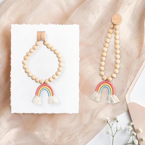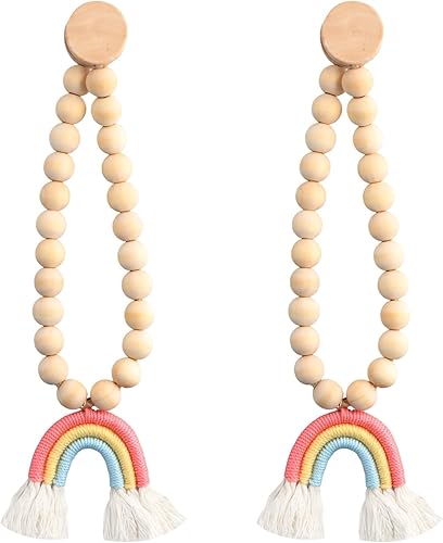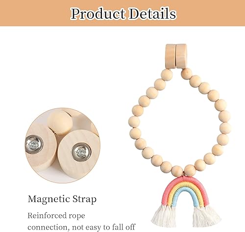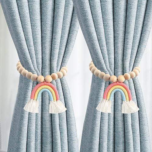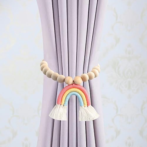 YILANJIN Lot de 2 Embrasses de Rideau Magnétiques, Boucles de Corde de Rideau, Arc-en-Ciel avec Perles Décoratives pour Rideaux de Fenêtre de Bois, Embrasses Bohèmes pour Rideaux
