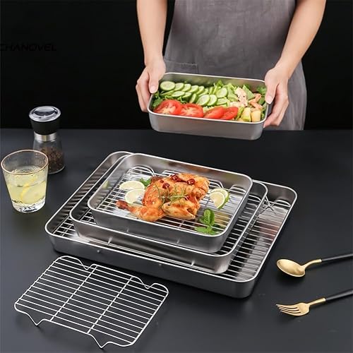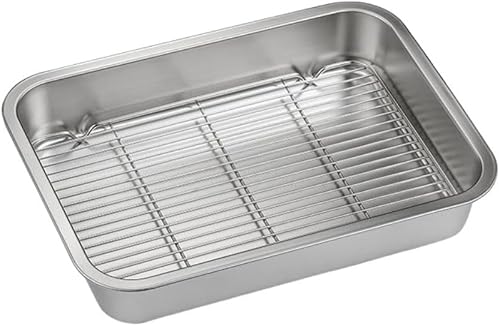 Plaque de cuisson en acier inoxydable avec grille de refroidissement autonome pour toutes les tâches de cuisson (31 x 24 x 5 cm)
