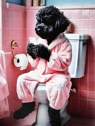 KUSTOM ART Poster mural décoratif série animaux Aristocratiques chien caniche avec téléphone portable sur eau, impression artistique sur papier couché 40 x 30 cm sans cadre