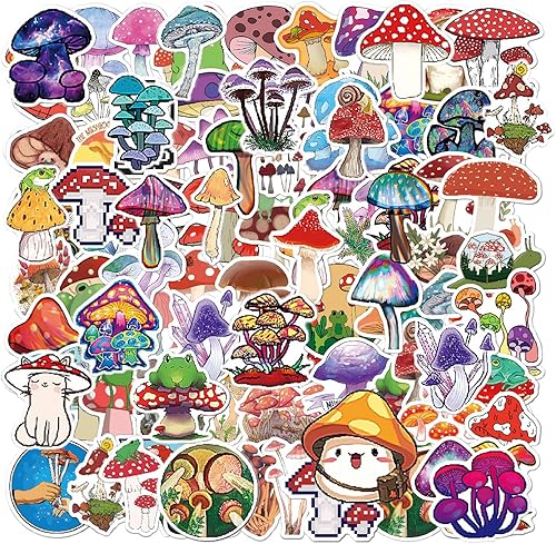 GTYHH 100 Feuilles D'Autocollants Champignons, Autocollants en Vinyle Autocollants, Autocollants Graffiti Champignons, Autocollants De Dessins Animés Imperméables, Planches À roulettes