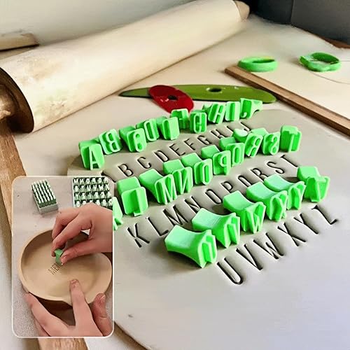 Tampon Alphabet Pour Argile,Tampon Lettre Ponctuation, Personnage, Tampon D'Enseignement NuméRique, Majuscules Et Minuscules Lettres Tampon Pour Argile, Fournitures D'Artisanat Portables (B)