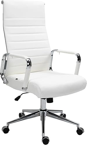 CLP Chaise De Bureau Kolumbus en Véritable Cuir I Fauteuil De Bureau Réglable en Hauteur Pivotant Piètement Mécanisme A Bascule Intégré, Couleur:Blanc