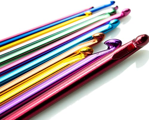 11 Pièces Crochet Tunisien,Multicolore Aluminium Tunisien Afghan Crochet,Crochet Aiguilles À Tricoter Set pour Crochet Débutants et Professionnels( 2 à 8 mm)