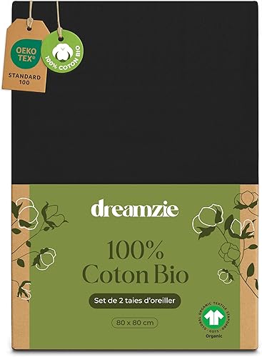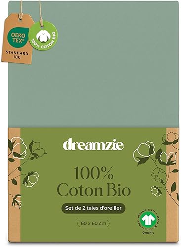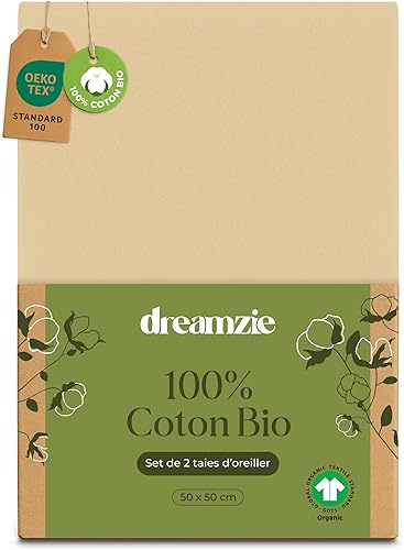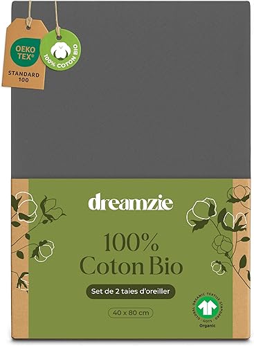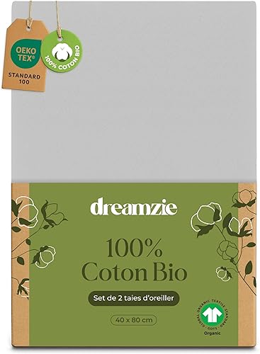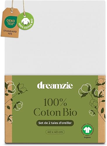 Dreamzie - 100% Coton Biologique - Taie d'oreiller 40x60 cm Coton Bio - Lot de 2 - Blanc - Taie Oreiller Rectangulaire avec Fermeture Éclair - Oeko-Tex