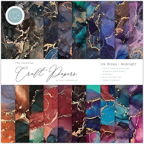 Craft Consortium Bloc de papier double face 30 feuilles 30,5 x 30,5 cm, couleur minuit, 20 motifs