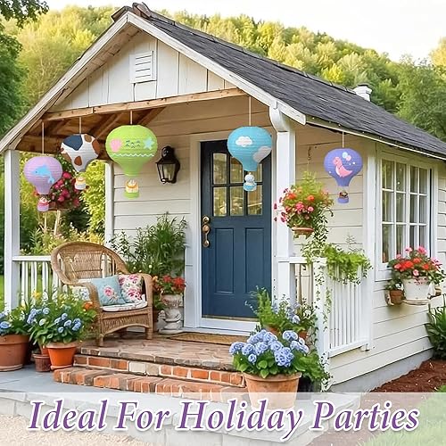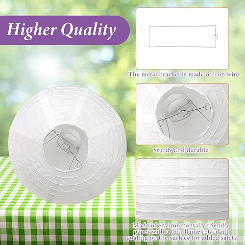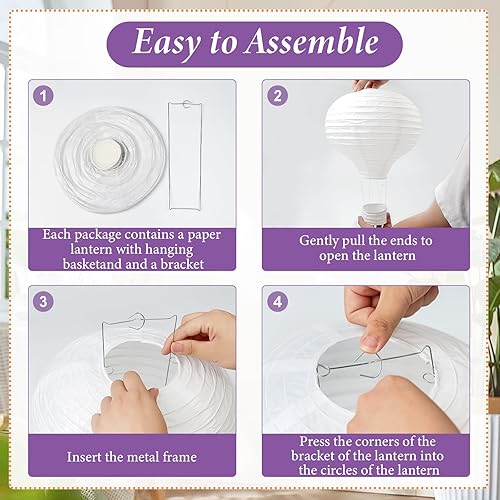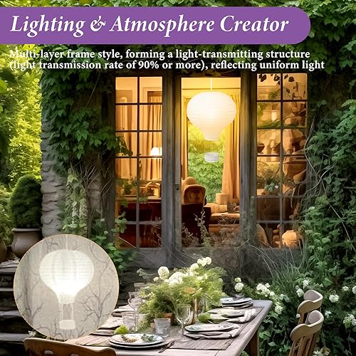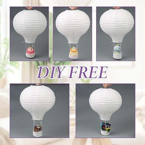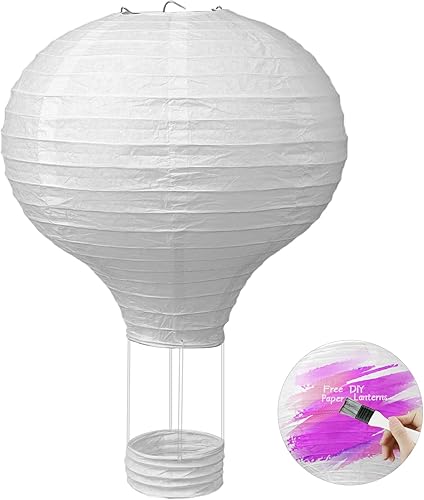 YIWONFU 1 Lanterne en Papier à Suspendre Diamètre 30 cm, Blanche Lgnifuge/Pliable Montgolfière avec Gondole et Support Métallique pour Bricolage, Anniversaire, Fête