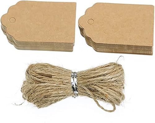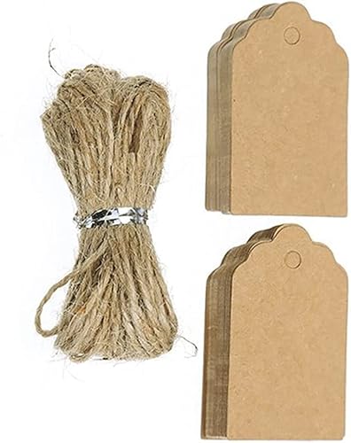 U-K Useful and practical Lot de 100 étiquettes en papier kraft avec ficelle jute pour bricolage, cadeaux bagages, d'identification vierges, cadeau l'automne, mariage, Noël