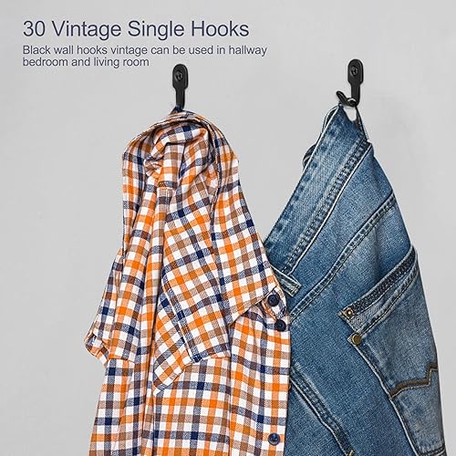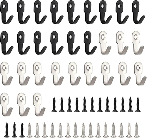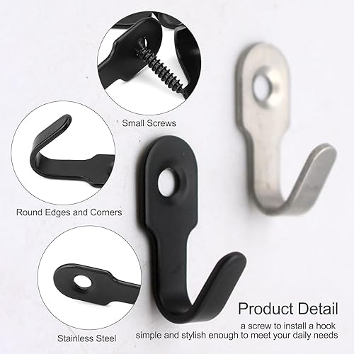 NEUSID Lot de 30 Crochets Muraux à Visser, Crochet Clé, 27 mm, En Acier Inoxydable, Avec 30 Vis, Style Vintage, Pour Cuisine, Salle de Bain, Bureau (Noir, Argent)