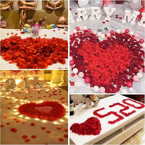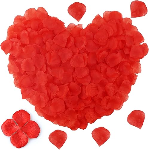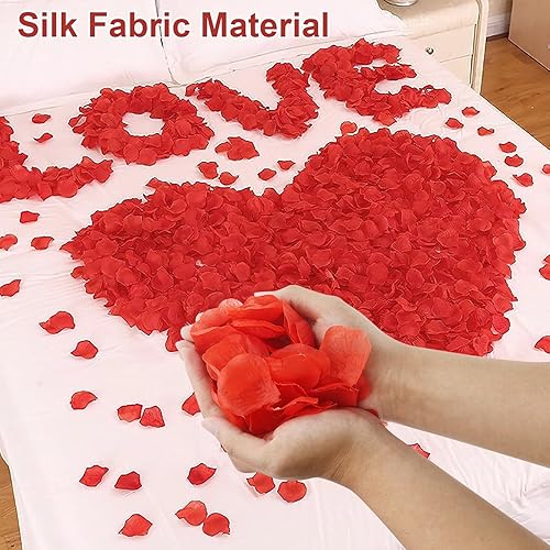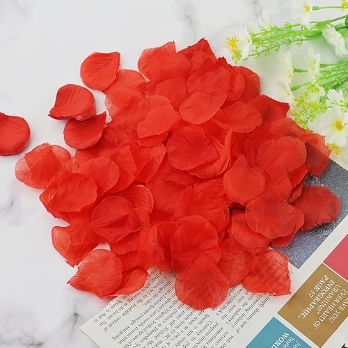 2000 Pièces Pétale de Rose Rouge Artificiels, Petale de Rose Rouges for Decoration Mariage, Saint Valentin, Anniversaire, Ambiance Romantique