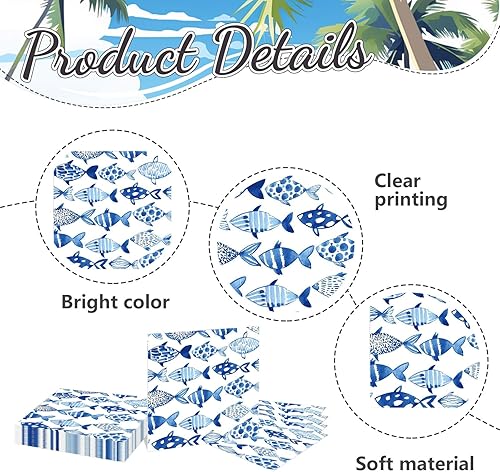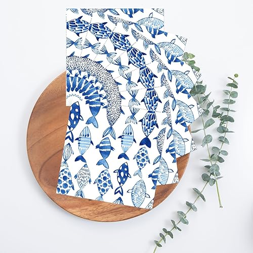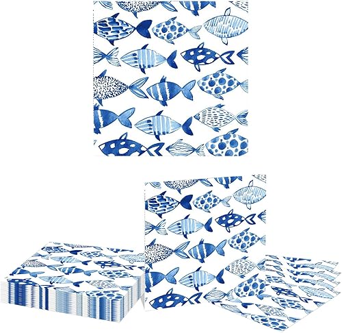 Kotkiddy Lot de 20 Serviettes Invités Poisson Océan Bleu Aquarelle Serviettes Papier Jetables Décoration de Table Été