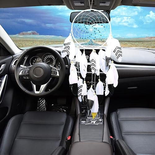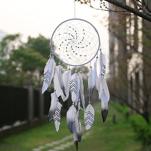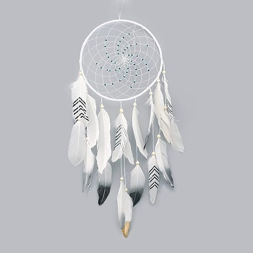Capteur de Rêves—IMMIGOO Attrape-rêves Plumes Décoration Maison Murale Intérieure Ornement Suspendue Cadeaux Fille Blanc