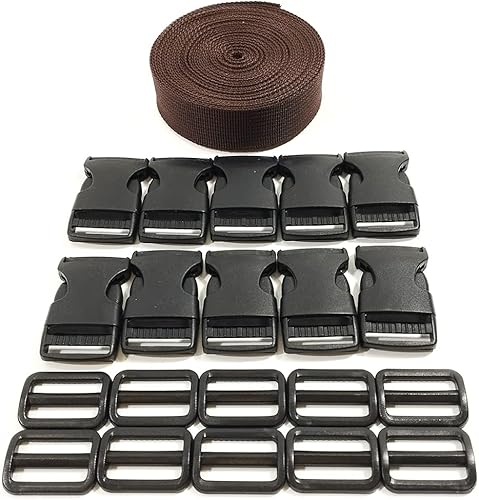 Sangle de Sac à Dos 5M x 25mm + 20 Boucles en Plastique, Sangle pour Valises et Bagage, Ruban pour Couture et Travaux Manuels, Sangle Marron, (25 mm X 5 m, 303)