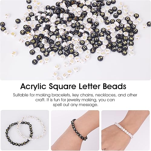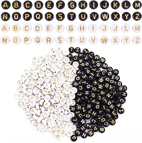 1000 Pièces perles lettres Rondes pour bracelet, Acryliques Alphabet Beads de A à Z, 7 x 3,5 mm, pour la fabrication de bijoux, colliers, bracelets, porte-clés