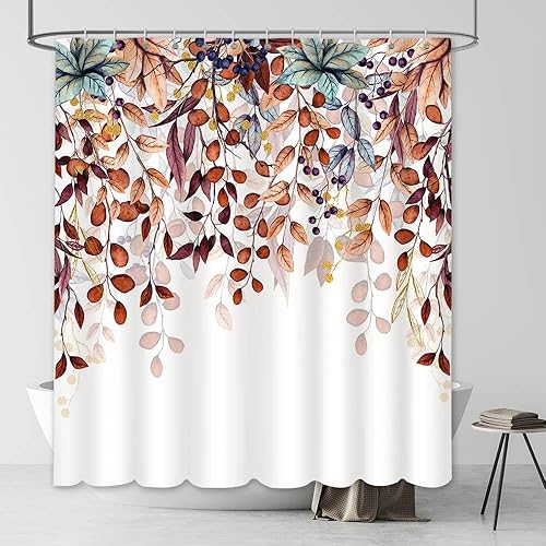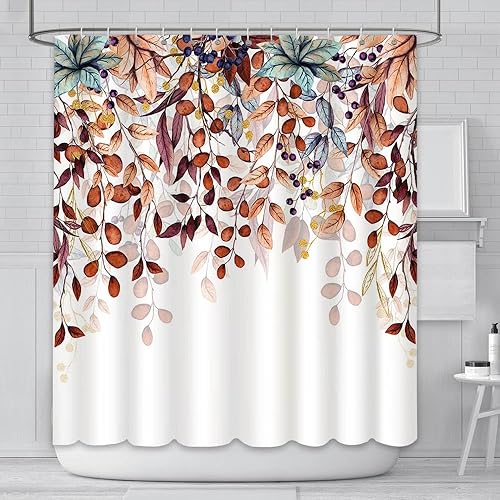 AIBIIN Rideau de douche motif feuilles d'automne à suspendre 180 x 180 cm avec feuilles d'eucalyptus et baies d'eucalyptus pour salle de bain lavable imperméable durable en polyester avec 12 crochets