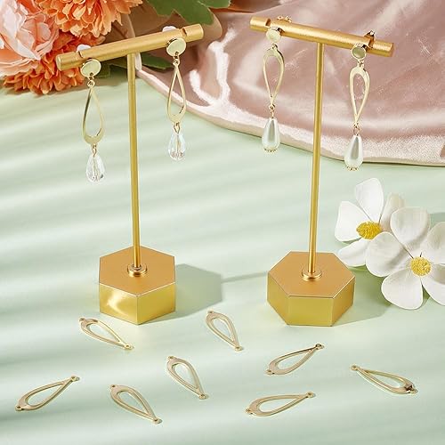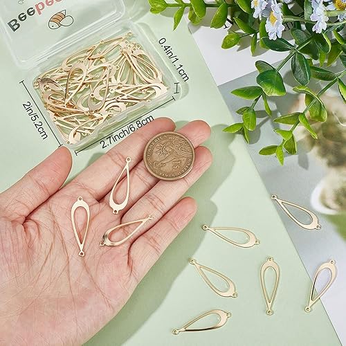 Beebeecraft 1 boîte de 50 anneaux à Maillons en Forme de Goutte D'Eau en Laiton Plaqué Or 24 carats avec Cadres Creux et Lunette Ouverte avec 2 boucles pour Loisirs Créatifs, Fabrication de Bijoux