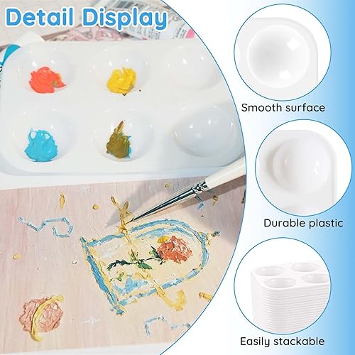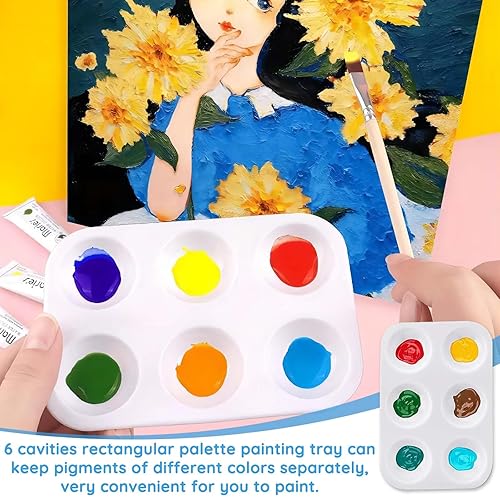 Lot de 20 palettes de mélange de peintures acryliques rectangulaires en plastique avec 6 champs de mélange (blanc)
