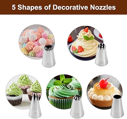 Poche a Douille Patisserie Professionnelle, Poches a Douille Reutilisable 30cm avec 5 Pièces Becs, DIY Patisserie Accessoire Kit, Lavables au Lave-Vaisselle, pour Deco Gateau, Biscuits, Cupcake