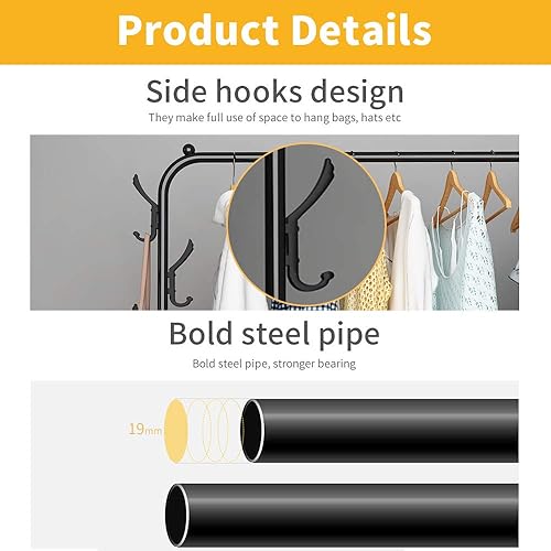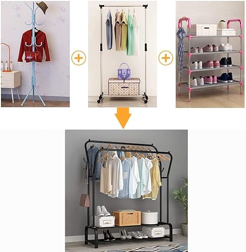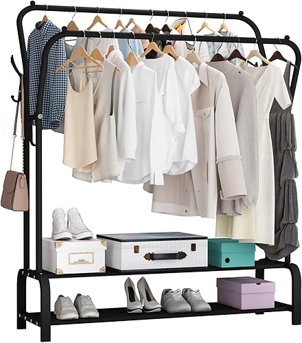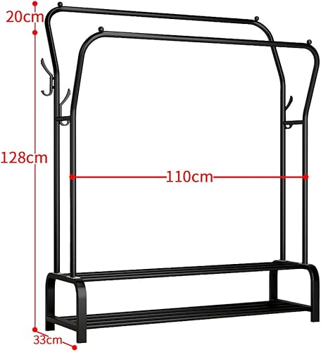 UDEAR Porte Vêtement sur Pied Cintre Tiges Doubles Chambre multifonctionnelle Portant à Vêtements, Double Couche , 4 Crochets , Noir