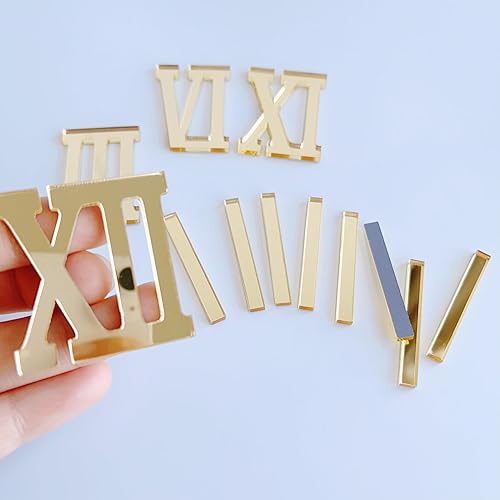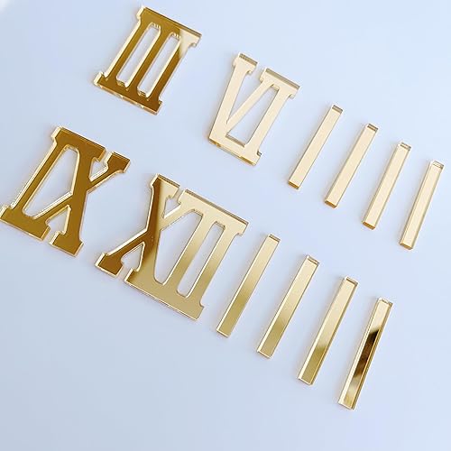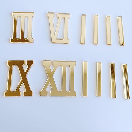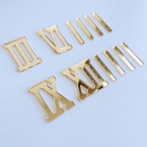 NUO RUI Lot de 12 chiffres romains miroir dorés et tirets pour bricolage une horloge murale (miroir doré)