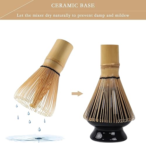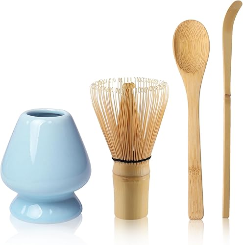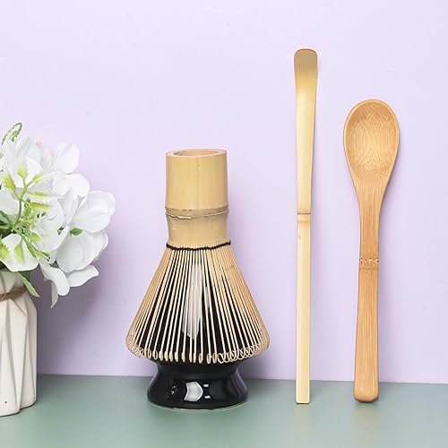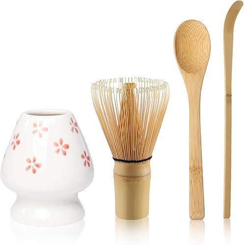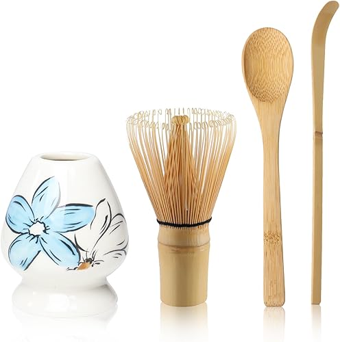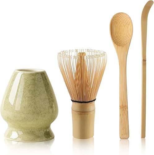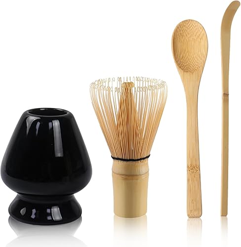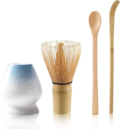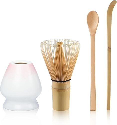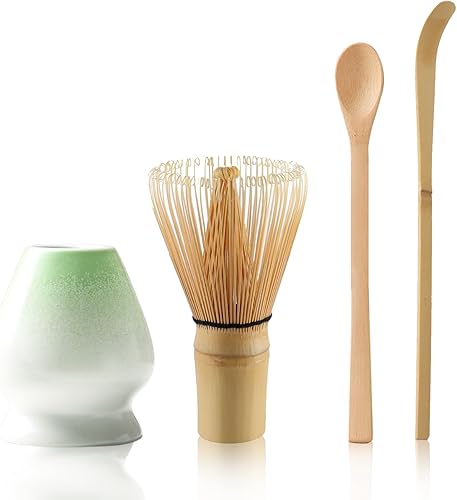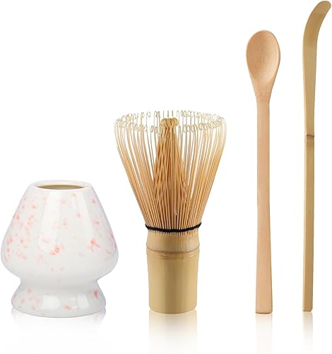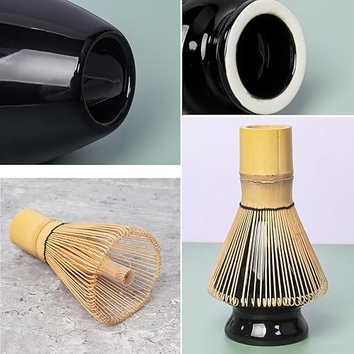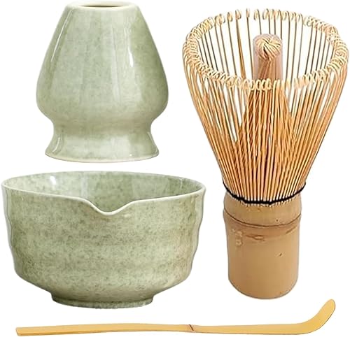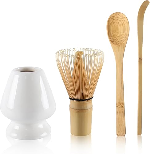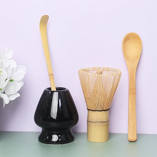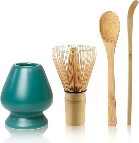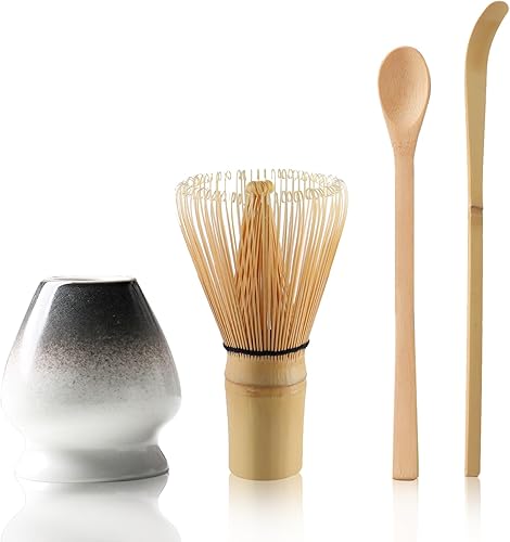 4pcs / set Matcha Whisk Set Ceramic Matcha Witch Matcha Matcha Set Elegant Matcha Kit comprend un bol de matcha avec bec, un porte-coups de Matcha, un fouet en bambou et une cuillère en bambou p