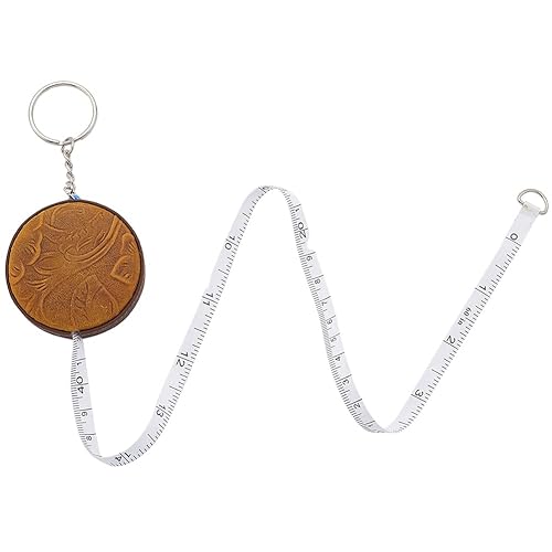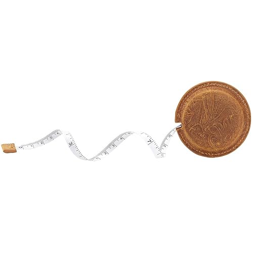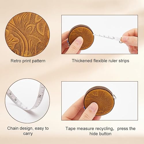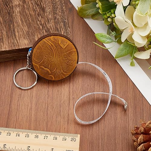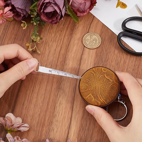 GORGECRAFT Ruban à Mesurer Rétractable de 1.5m Rétro Crazy Horse Cuir Véritable Motif de Fleurs Souples Ruban à Mesurer Rond Mesures de Couture du Corps Mini Règle à Rouleau Double Face Jaune Marron