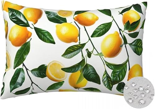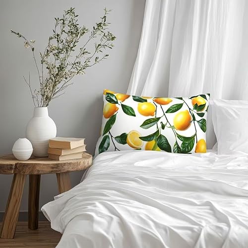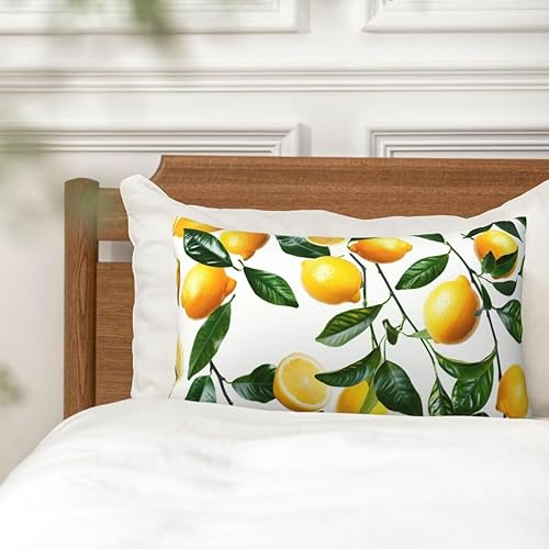 Housse Coussin Exterieur Impermeable Lin, Lot de 2 Housse de Coussin 20x30 cm, Housses de Coussin Feuille Coussins Décoratifs Citron Taie d'oreiller pour Salon Patio Jardin Canapé Decoration -FS141
