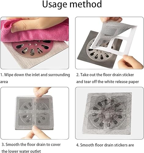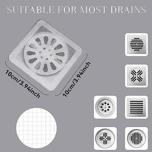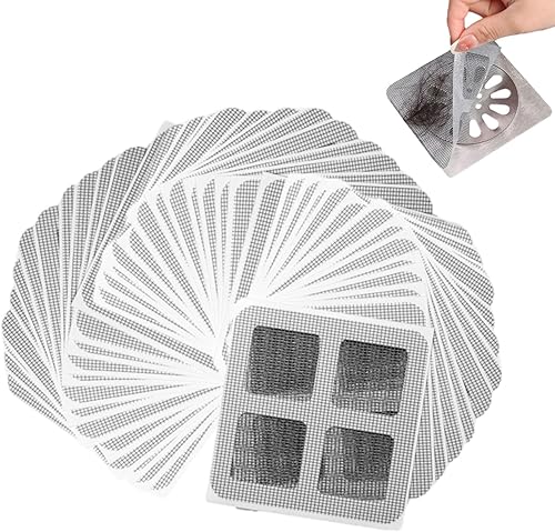 Lot de 100 autocollants jetables pour canalisations de sol, collecteur de drainage jetable, attrape-cheveux, filtre de vidange de sol (50 pièces, 10 x 10 cm)