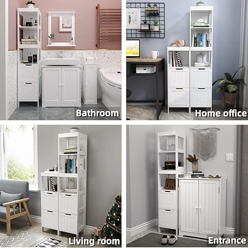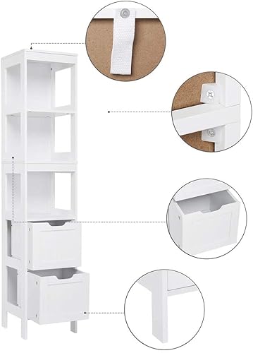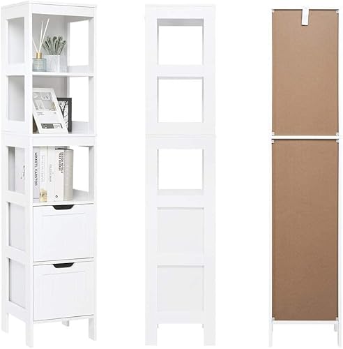 Mondeer - Colonne Salle de Bain - Moderne Meuble - 2 Tiroirs 3 Étagères, Peinture en MDF, 30 x 30 x 144 cm Rangement pour Cuisine Salon, Blanc