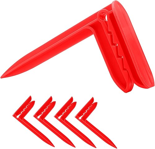 Lot de 4 piquets de plage pour fixer – Idéal pour la plage, le voyage, le camping ou le pique-nique, les chevilles de plage – Arrêtez (rouge)