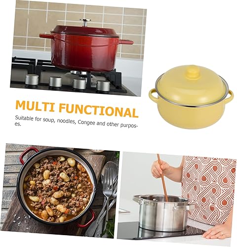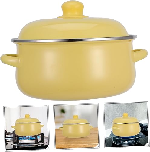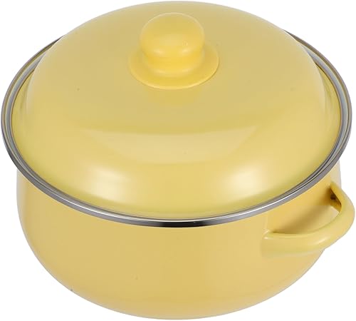 ABOOFAN Casserole Émaillée avec Couvercle Pot à Soupe et Ragoût Jaune Poignées Dural Ustensile de Cuisine pour Cuisinière à Induction et