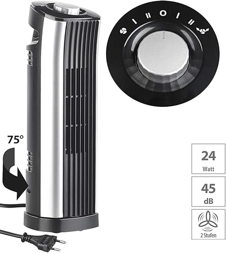 Sichler Haushaltsgeräte Ventilateur Colonne 24 W avec Oscillation 75° et 2 Niveaux de Vitesse