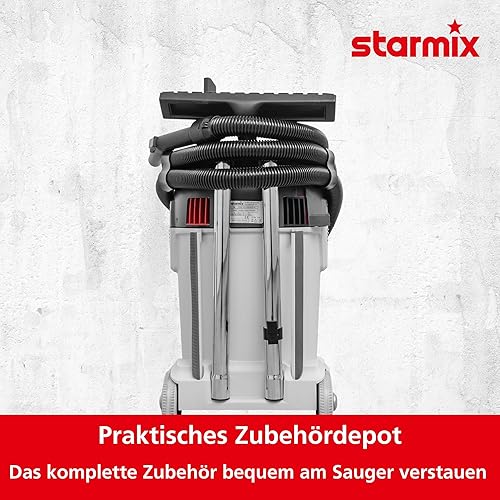 Starmix Aspirateur Eau et poussière Energetic APDM-1430 (aspirateur/aspirateur Universel avec Max. 1 400 Watts, 220 mbar, cuve de 30 l, Nettoyage du Filtre PressClean, Classe de poussière M) 110042