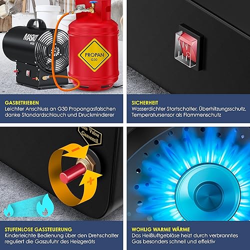 Masko® Radiateur Soufflant à Gaz, Canon à Chaleur, Chauffage Radiant, Générateur d'Air Chaud de Chantier, Noir, 30 KW
