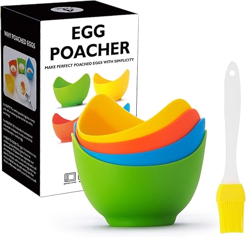 Lot de 4 pocheuses à œufs en silicone avec brosse à huile en bonus, tasses à pocher antiadhésives pour friteuse à air, four de cuisson ou cuisinière, sans BPA.