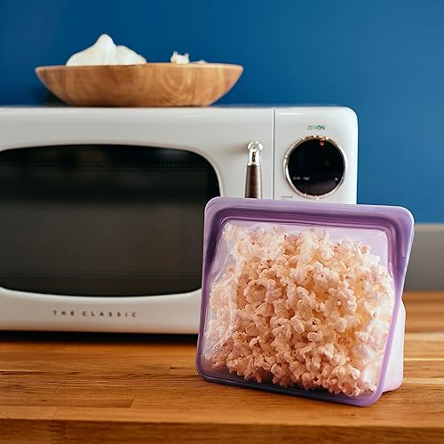 Stasher Premium Silicone Réutilisables Sac Clair, Stand Up Mid Bag, Sac à Snacks, Stockage Alimentaire, Durable, Résistant au Four, Lave-Vaisselle & Congélateur, Écologique, Sans-Fuite, 1,65 L