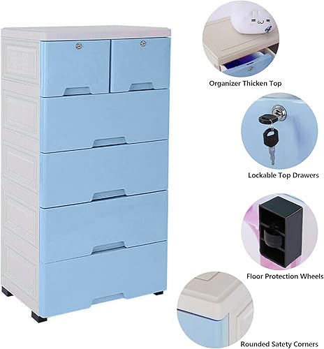 chennnls Tour de rangement en plastique, meuble de rangement avec 6 tiroirs et 4 roues, meuble de rangement moderne, pour salon, chambre à coucher, 50 x 30 x 120 cm (l x P x H) - Rose