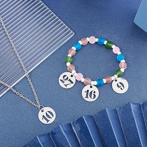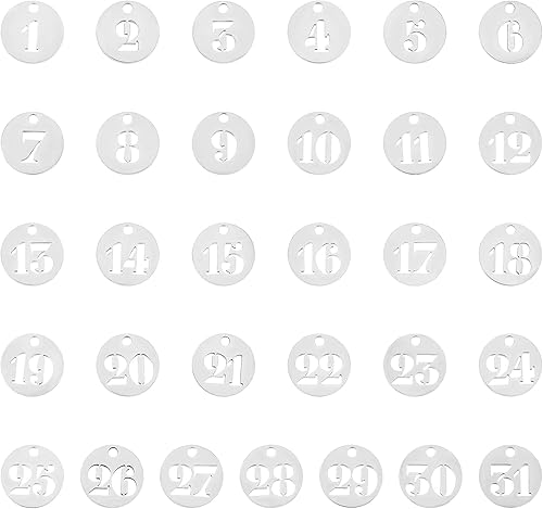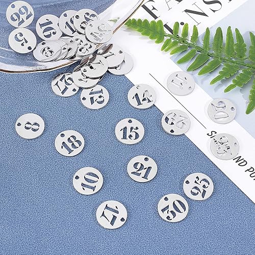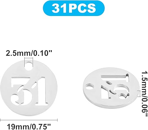 UNICRAFTALE 31 pièces Breloque Numéro 1~31 Breloques Acier Inoxydable Breloques Rondes Pendentifs Chiffres Chanceux Breloques pour Bracelet Boucle d'oreille Collier Breloques Creation Bijoux