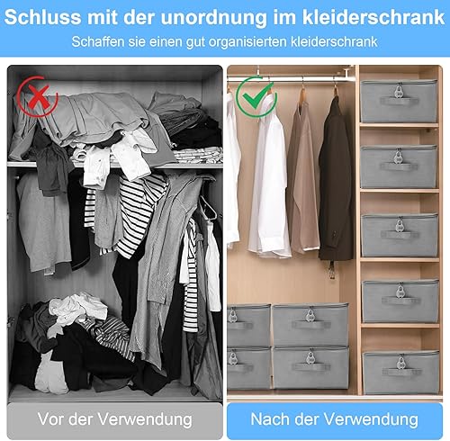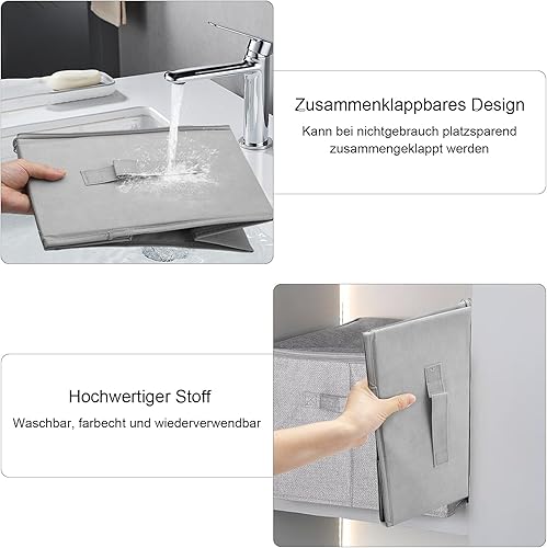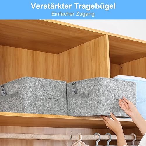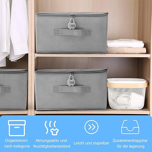 APOMOONS Boite Rangement Boite Rangement Textile, en Tissu, Boite de Rangement Tissu avec Couvercle, Caisse Pliable Verrouillable, pour Vêtements, Jouets, Gris 35x22x17.5cm