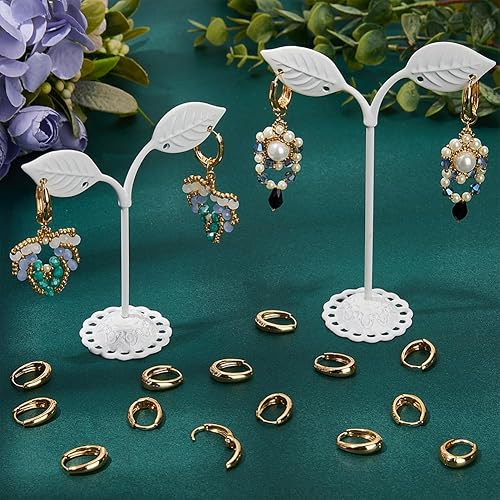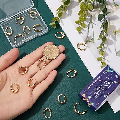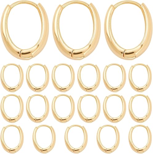 SUNNYCLUE 1 boîte de 20 boucles D'Oreilles Créoles en Laiton Plaqué Or 18 carats Véritable Crochets de Boucles D'Oreilles Ovales Anneau Rond en Métal en Vrac Petits Crochets de Cartilage avec Fermetur