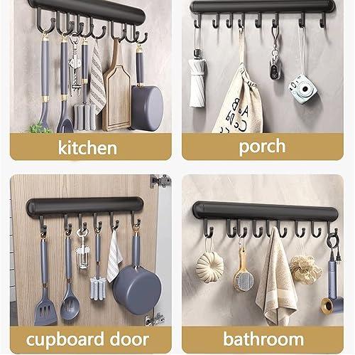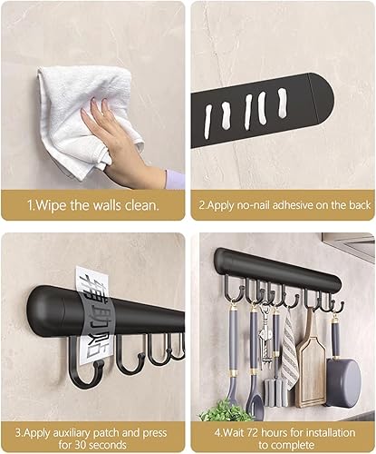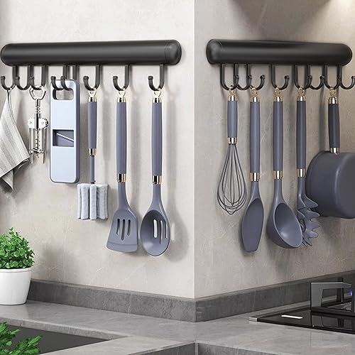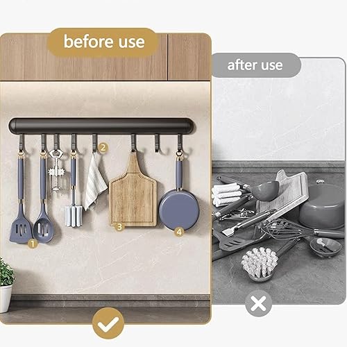 Global-Daily Rail de cuisine avec crochets, support à ustensiles avec crochets coulissants, support mural pour poêles, cuillères et pelles, autocollant (30 cm)
