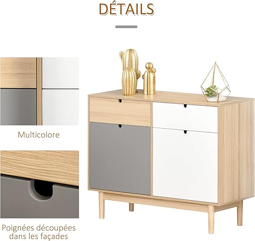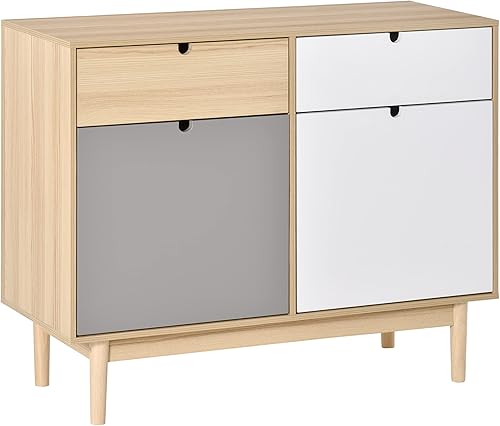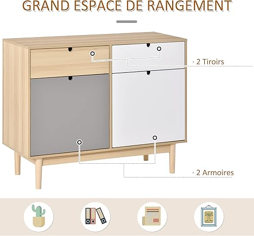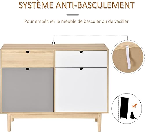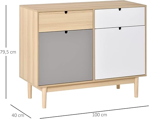 HOMCOM Buffet de Cuisine Commode de Chambre scandinave 2 placards tiroirs coulissants en Bois Multicolore Blanc Gris Clair