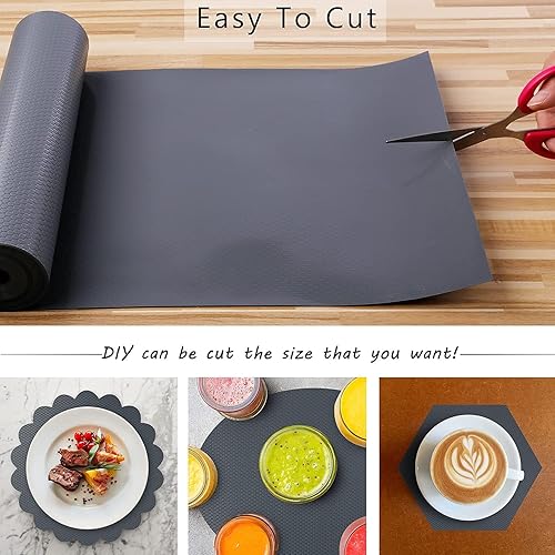 Protection tiroir Cuisine,Tapis de tiroir EVA antidérapant,Tapis Plastique frigo,Tapis Fond evier étanche,Tapis de Protection Table pour Placard, étagères, étagère à Chaussures (44,5x500 cm, Gris)